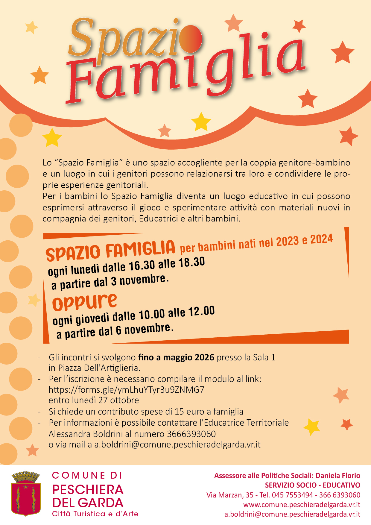 Maggiori informazioni nelle locandine allegate oppure è possibile contattare l'Educatrice Territoriale Alessandra Boldrini alla mail a.boldrini@comune.peschieradelgarda.vr.it