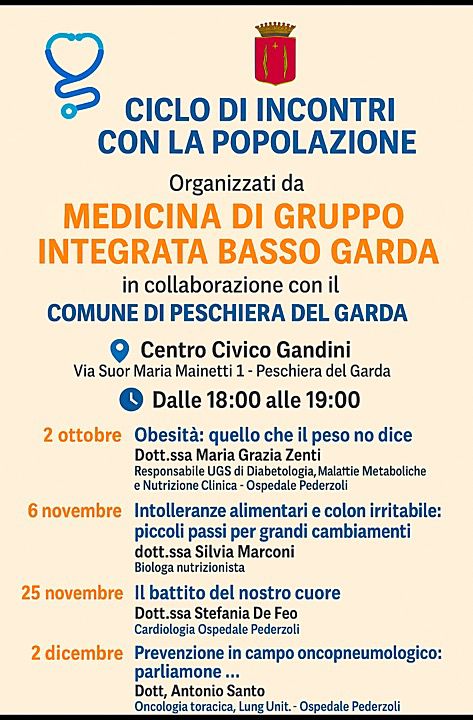 - Giovedì 2 Ottobre, ore 18.00 - Ciclo di incontri per la popolazione: Primo incontro - Obesità, quello che il peso non dice - Dott.ssa Maria Grazia Zenti