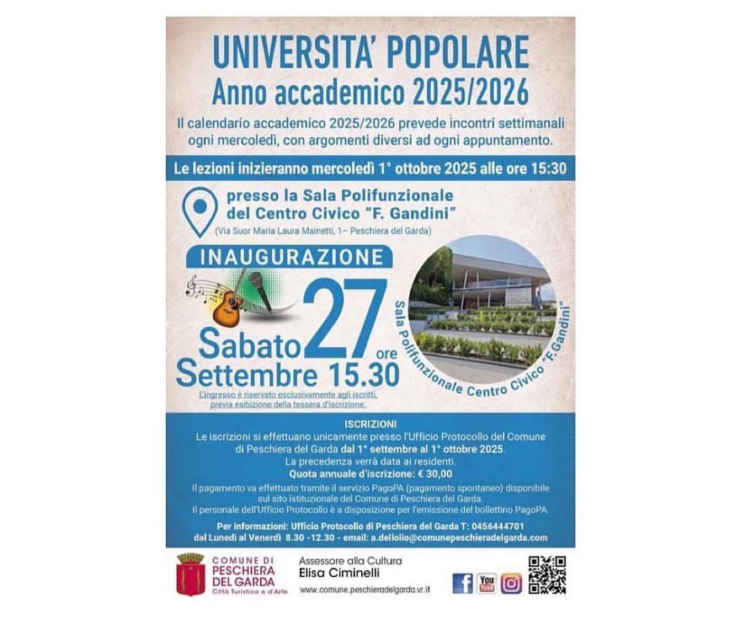 - Sabato 27 Settembre, ore 15.30 - Inaugurazione Univeristà Popolare 2025/2026